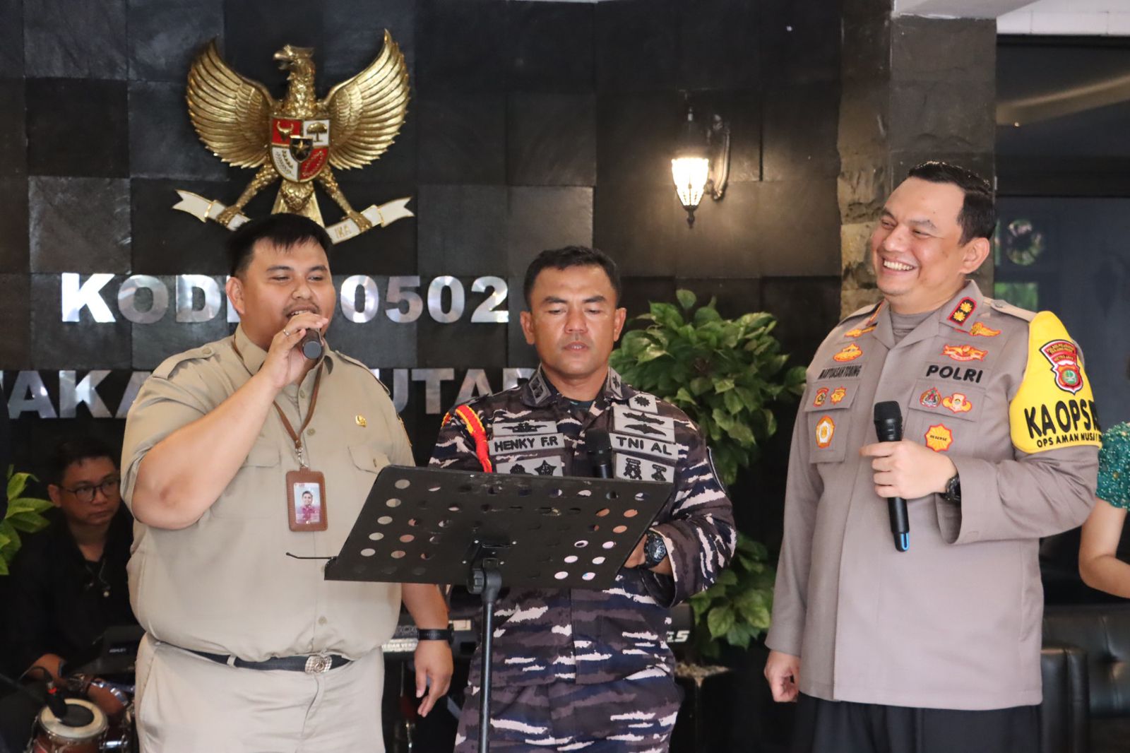 Senin, 7 Oktober 2025 — Dalam rangka memperingati Hari Ulang Tahun Tentara Nasional Indonesia (TNI) ke-80, Forum Komunikasi Pimpinan Kota (Forkopimko) Jakarta Utara menggelar acara kejutan di Markas Komando Kodim 0502/Jakarta Utara pada Selasa (7/10/2025) pagi.