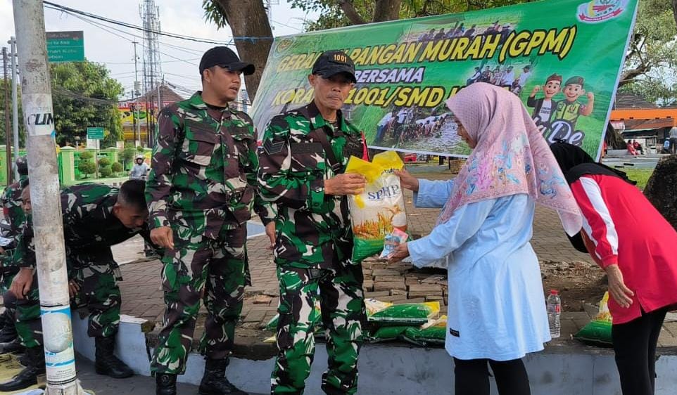 Kegiatan yang dimulai sejak pukul 08.00 WIB ini menghadirkan berbagai kebutuhan pokok dengan harga terjangkau bagi masyarakat. Sebanyak 20 ton komoditas berhasil terjual pada kegiatan pasar murah yang tersebar mulai dari Makodim hingga seluruh Koramil jajaran.