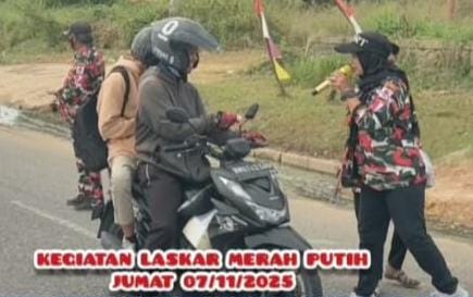 Laskar Merah Putih kabupaten Pelalawan Mengadakan Jumat berbagi Berkah di jalan lintas Koridor perkantoran arah kantor Bupati Pelalawan , Jumat berbagi berkah ini di bagikan kepada setiap pengguna jalan yang hendak melintas bertujuan agar kita sesama umat saling berbagi rezeky. Jum at, 07 November 2025.