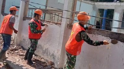 Lima orang Babinsa dari Koramil 1010/Darmaraja yang dipimpin oleh Serka Juhana, bersama warga setempat, melaksanakan kegiatan Karya Bakti Rehabilitasi 20 ruang kelas di SMA Negeri Darmaraja, yang berlokasi di Jalan Cikondang No. 90, Desa Darmaraja, Kabupaten Sumedang.